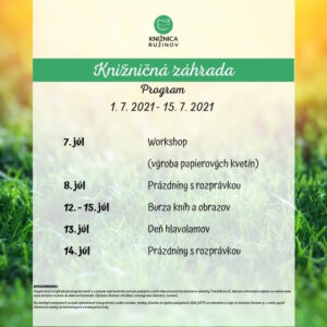 Predchádzajúci Článok KNIŽNIČNÁ ZÁHRADA - PROGRAM 1. - 15.7.2021