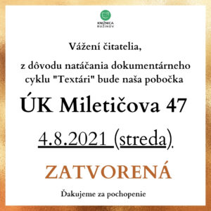 Ďalší Článok ZATVORENÉ (ÚK MILETIČOVA 47)