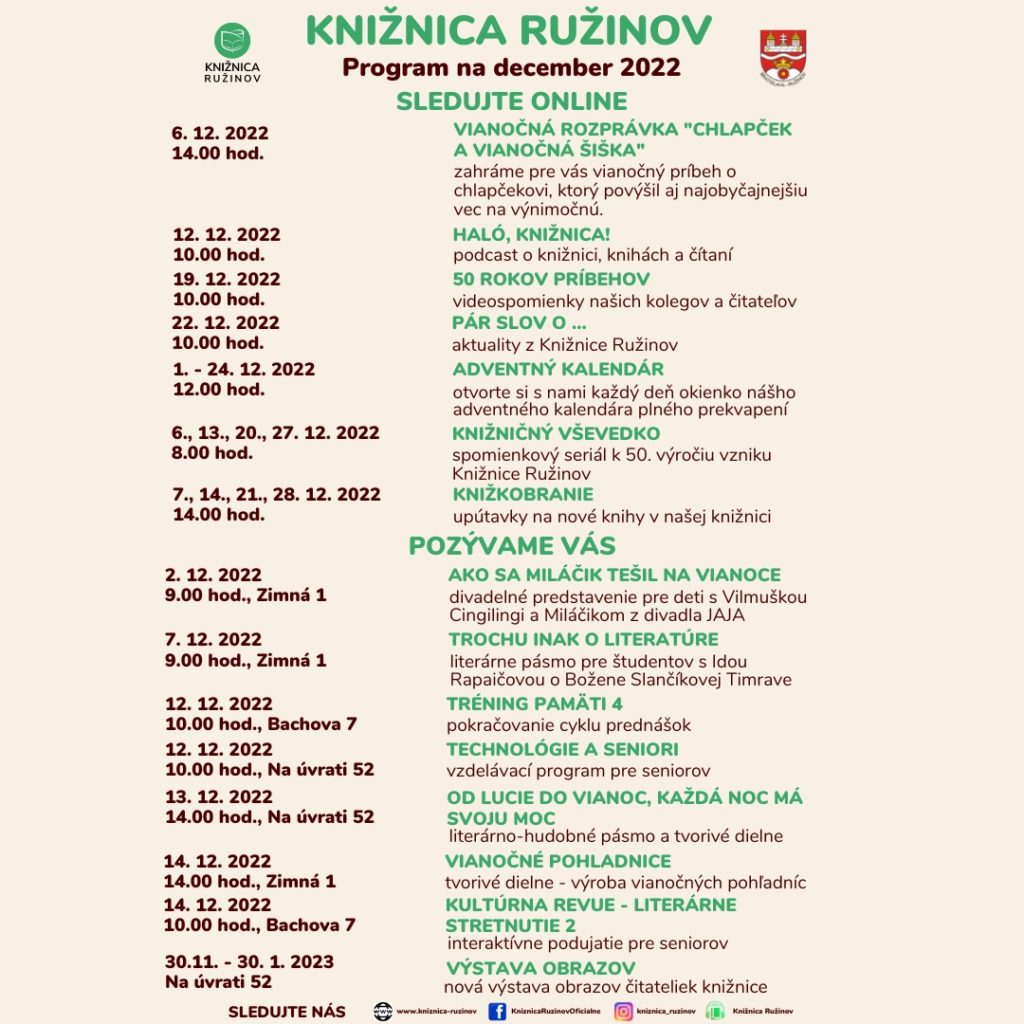 Program Knižnice Ružinov na december 2022