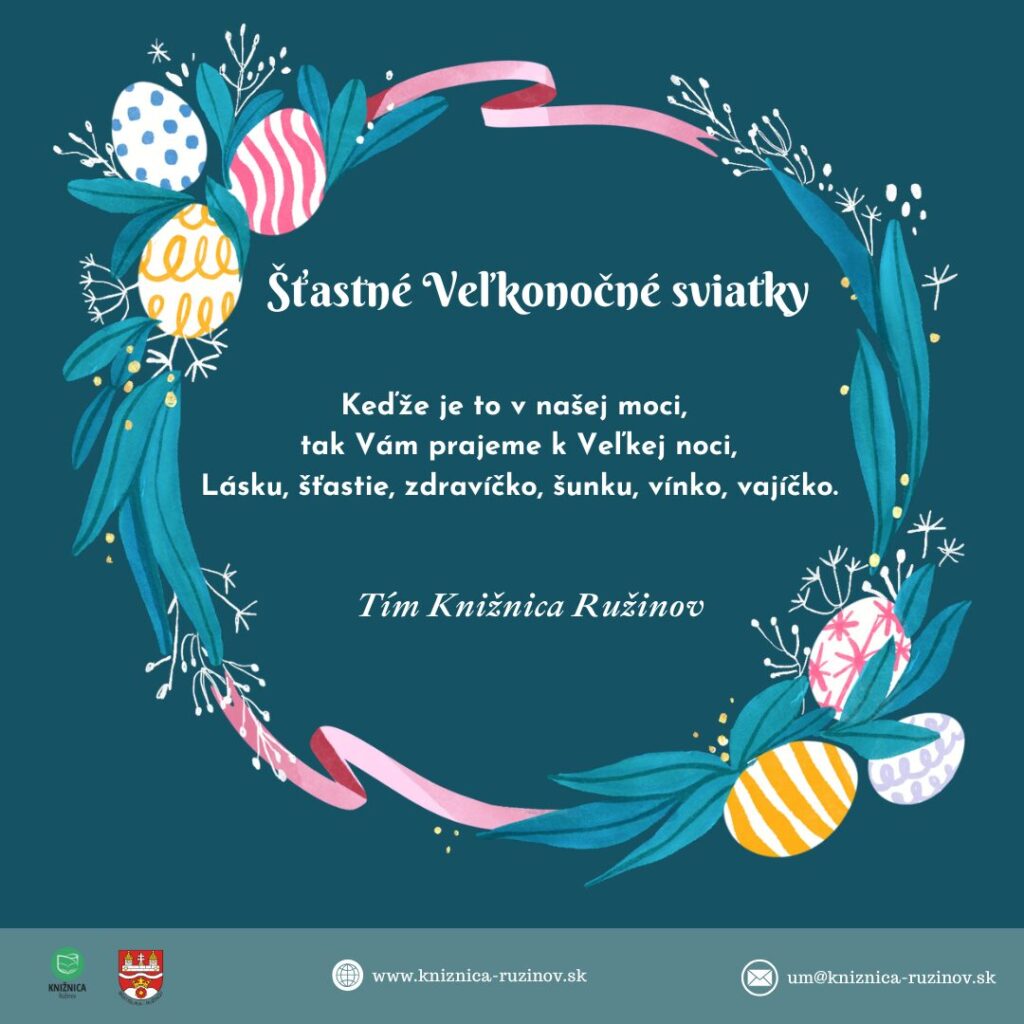 Tím Knižnice Ružinov Vám praje šťastné a pokojné veľkonočné sviatky.
