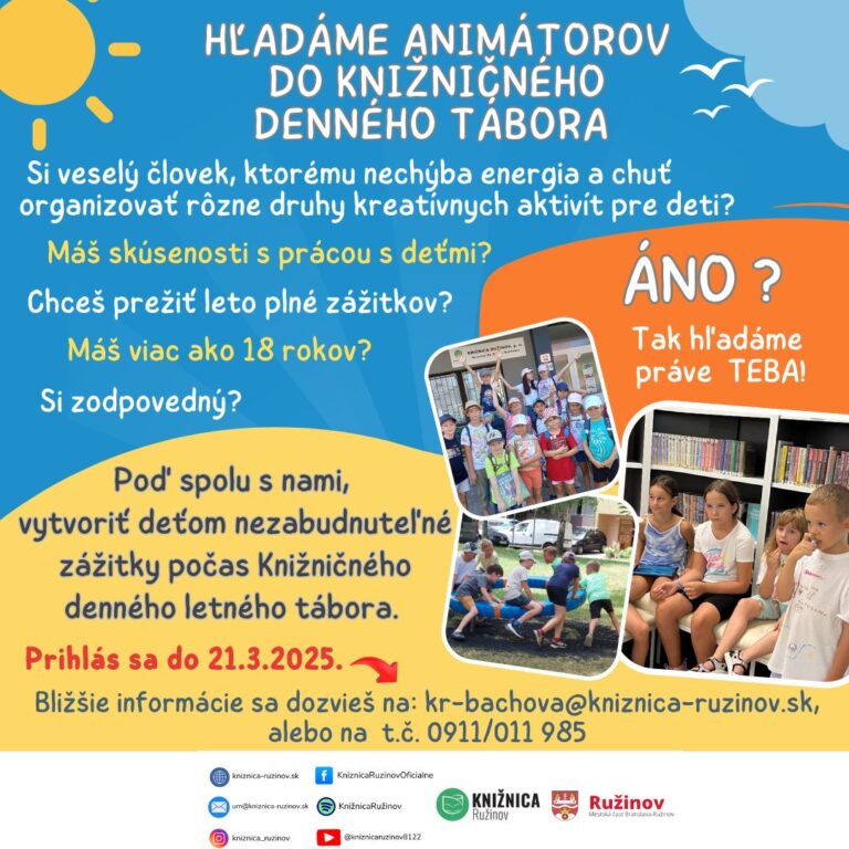Hľadáme animátorov do Knižničného denného letného tábora 2025
