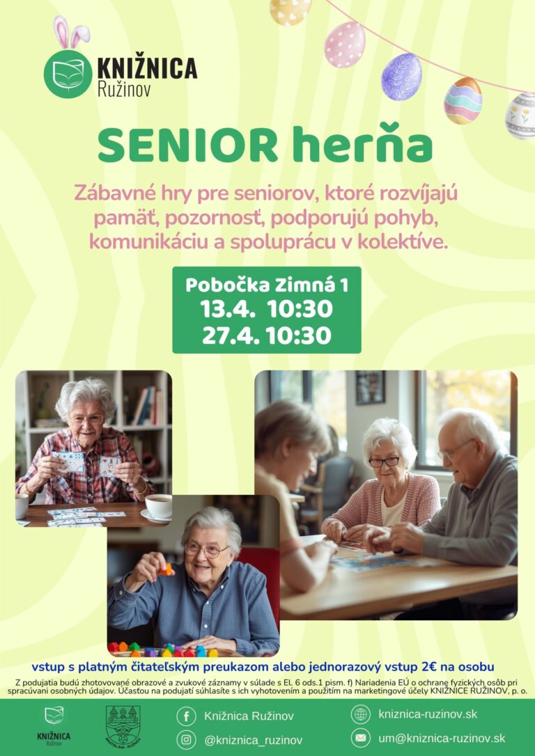 Kto povedal, že herňa je len pre deti? V Knižnici Ružinov máme špeciálnu herňu pre našich čitateľov seniorov! Milí naši seniori, príďte sa s nami zahrať! Pripravili sme pre Vás zábavné hry, precvičíme si aj pamäť, aj sa trošku…