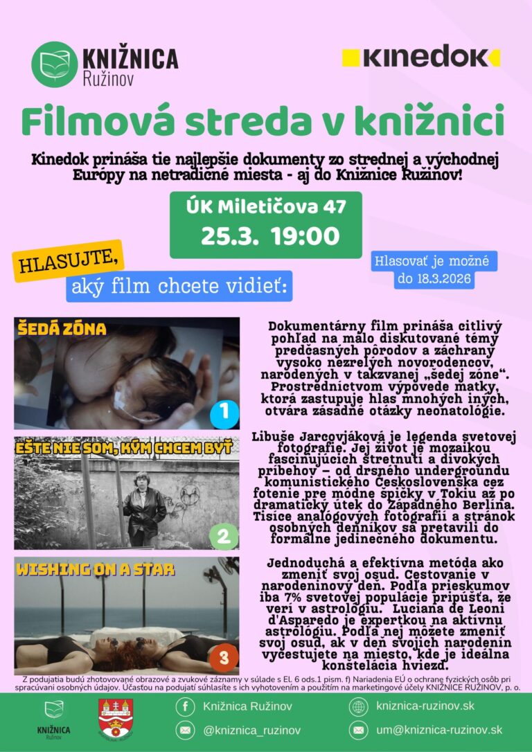 Kinedok prináša tie najlepšie dokumenty zo strednej a východnej Európy na netradičné miesta – aj do našej Knižnice Ružinov! Posledná streda v mesiaci bude opäť v Ústrednej knižnici na Miletičovej filmová A opäť, co sa bude pozerať, vyberiete Vy!…