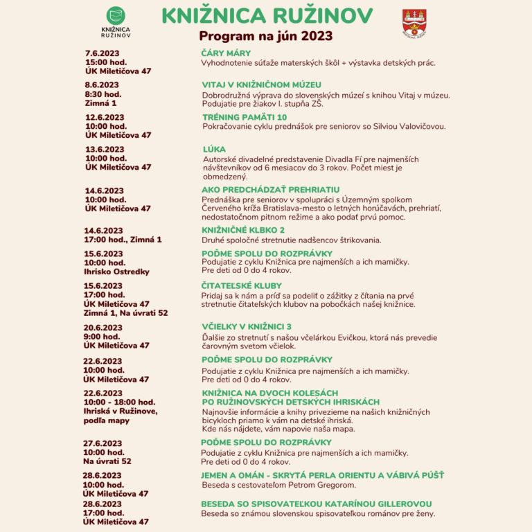 Čítať ViacProgram Knižnice Ružinov na jún 2023