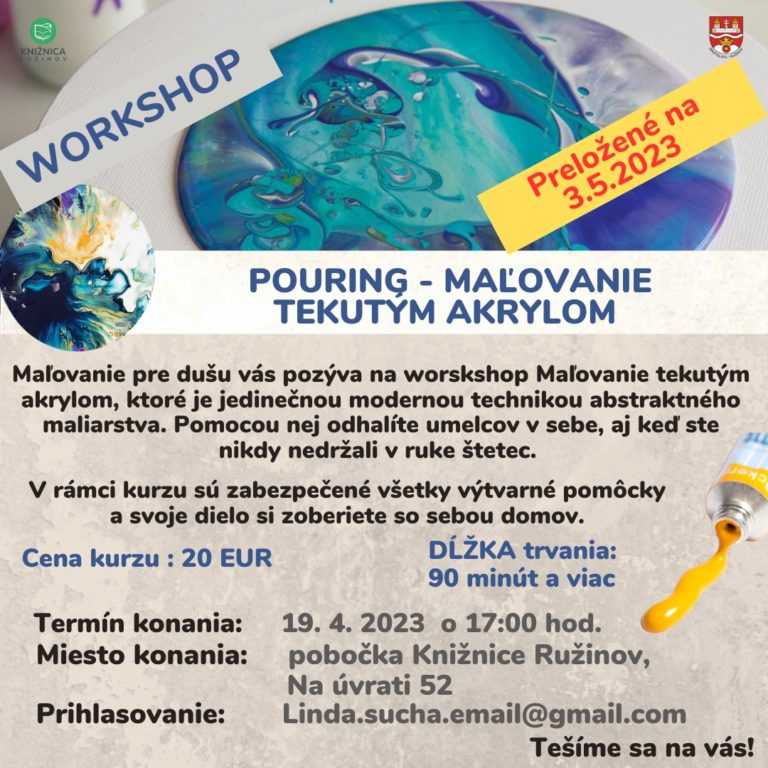 Čítať ViacWorkshop – Maľovanie tekutým akrylom – nový termín