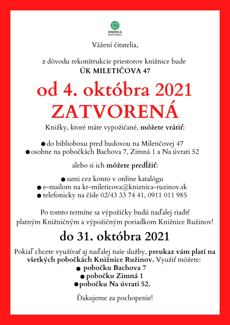 Čítať ViacPOBOČKA TOMÁŠIKOVA 25 – ZRUŠENIE