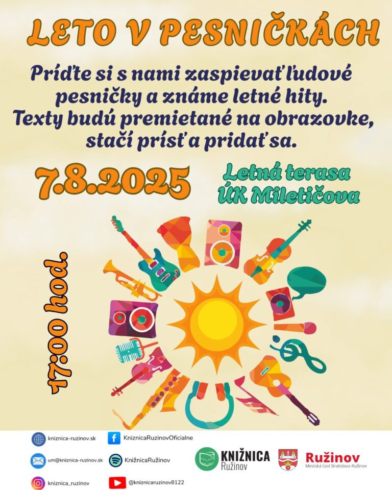 Leto v Knižnici Ružinov – PROGRAM NA AUGUST