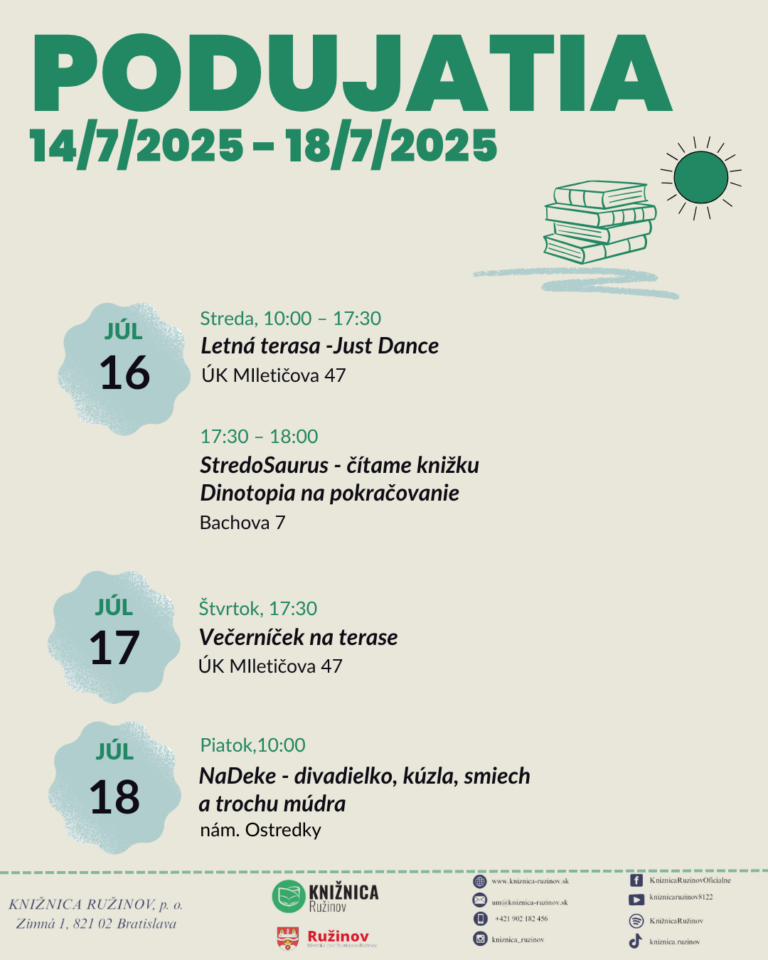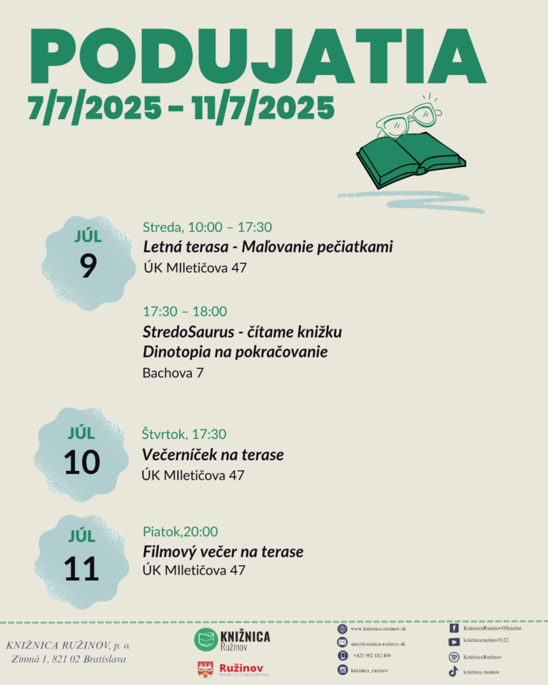 Čítať ViacLetné podujatia v Knižnici Ružinov: Tvorenie, čítanie aj filmový večer